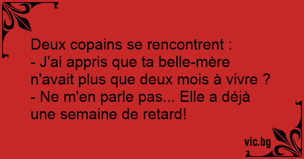- J'ai appris que ta belle-mère n'avait plus que deux mois à vivre ?