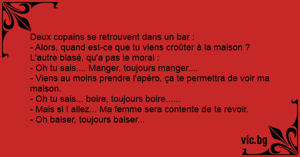 Deux copains se retrouvent dans un bar :