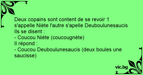 - Coucou Deuboulunesaucis (deux boules une saucisse)