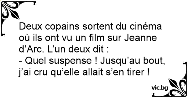 Deux copains sortent du cinéma où ils ont vu un film sur Jeanne d’Arc. L’un deux dit :
