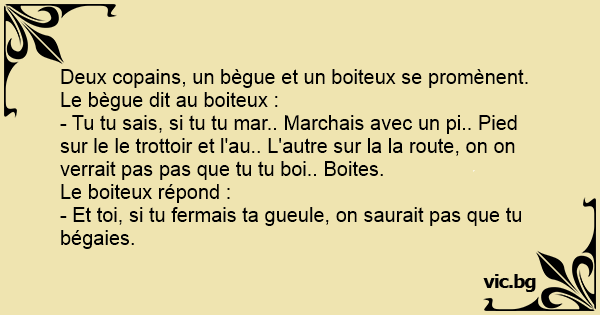 Le bègue dit au boiteux :
