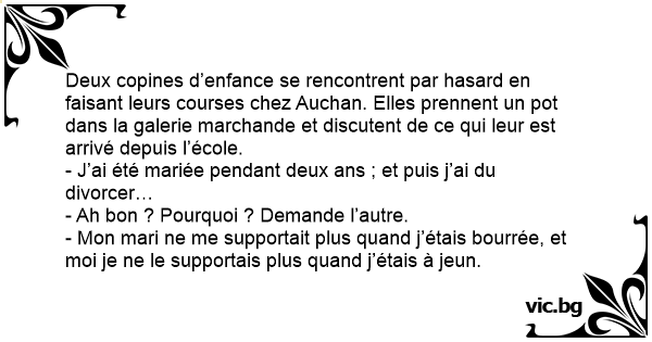 Deux copines d’enfance se rencontrent par hasard en faisant leurs courses chez Auchan. Elles prennent un рот dans la galerie marchande et discutent de ce qui leur est arrivé depuis l’école.