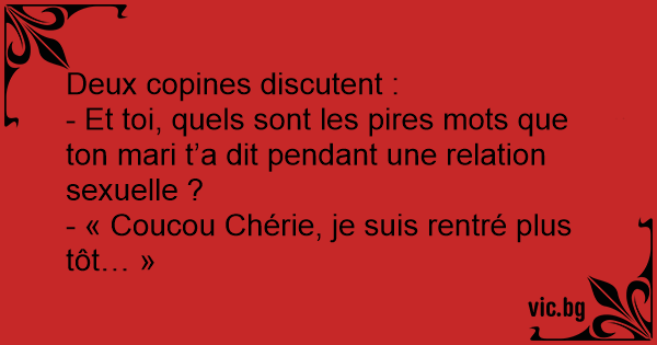 - Et toi, quels sont les pires mots que ton mari t’a dit pendant une relation sexuelle ?