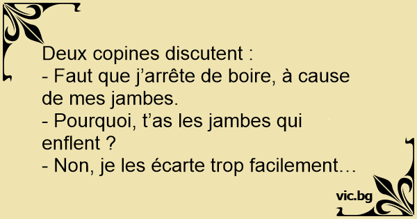- Faut que j’arrête de boire, à cause de mes jambes.