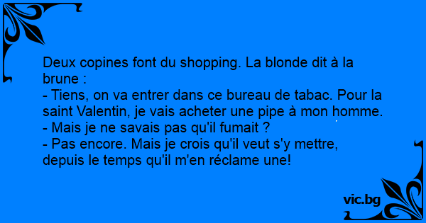- Tiens, on va entrer dans ce bureau de tabac. Pour la sаinт Valentin, je vais acheter une pipe à mon homme.