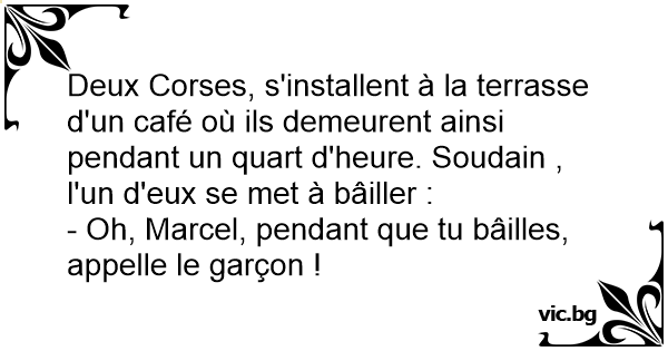 Deux Corses, s'installent à la terrasse d'un café où ils demeurent ainsi pendant un quart d'heure. Soudain , l'un d'eux se met à bâiller :