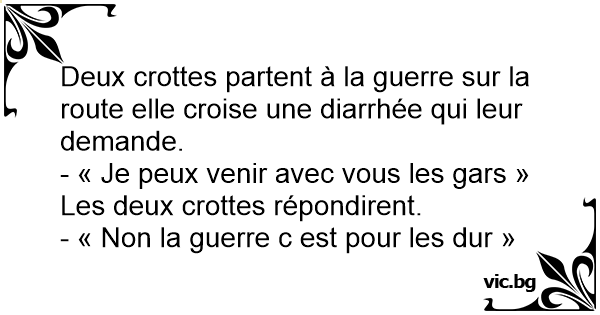 Deux crottes partent à la guerre sur la route elle croise une diarrhée qui leur demande.