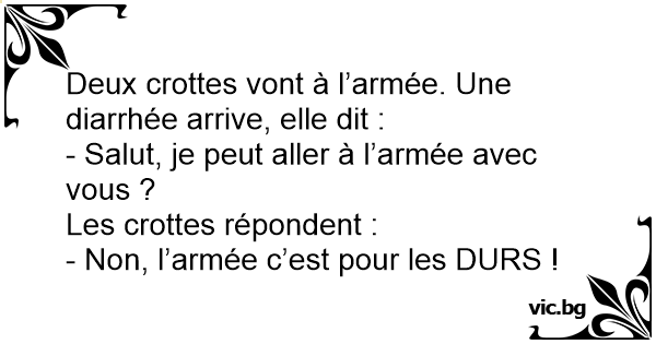 Deux crottes vont à l’armée. Une diarrhée arrive, elle dit :
