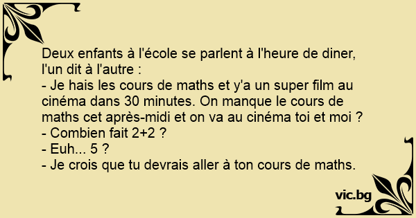 - Je hais les cours de maths et y'a un super film au cinéma dans 30 minutes. On manque le cours de maths cet après-midi et on va au cinéma toi et moi ?