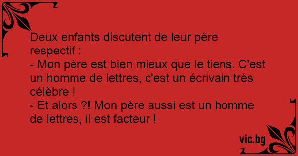 - Et alors ?! Mon père aussi est un homme de lettres, il est facteur !