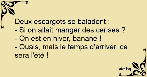 Eine Schnecke kriecht im Winter einen Kirschbaum hoch. Kommt ein Vogel vorbei und fragt: "Was machst Du denn da?" Die Schnecke: "Ich will Kirschen essen." "Aber da hängt doch nichts dran!" sagt da...