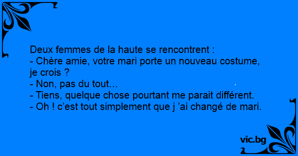 - Chère amie, votre mari porte un nouveau costume, je crois ?