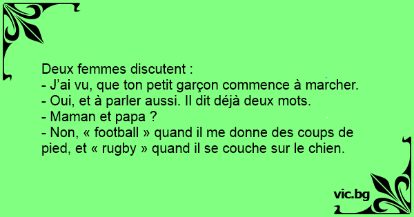 - Non, « football » quand il me donne des coups de pied, et « rugby » quand il se couche sur le chien.