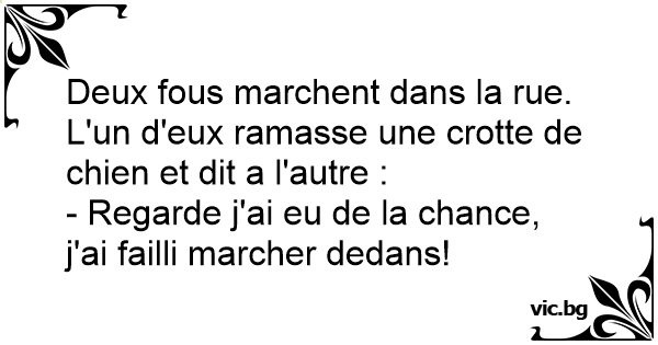 Deux fous marchent dans la rue. L'un d'eux ramasse une сrотте de chien et dit a l'autre :