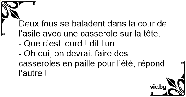 Deux fous se baladent dans la cour de l’asile avec une casserole sur la tête.