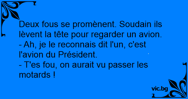 Deux fous se promènent. Soudain ils lèvent la tête pour regarder un avion.