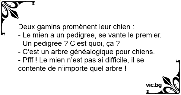 - Le mien a un pedigree, se vante le premier.