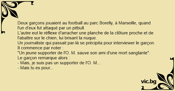 - Mais, je suis pas un supporter de l'O. M...