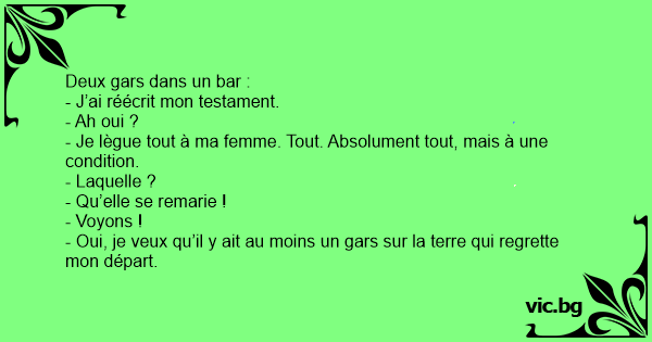 - Je lègue tout à ma femme. Tout. Absolument tout, mais à une condition.