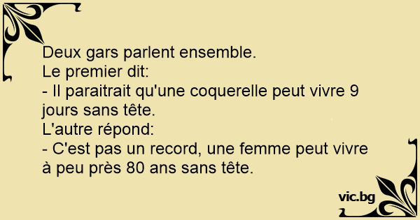 - C'est pas un record, une femme peut vivre à peu près 80 ans sans tête.