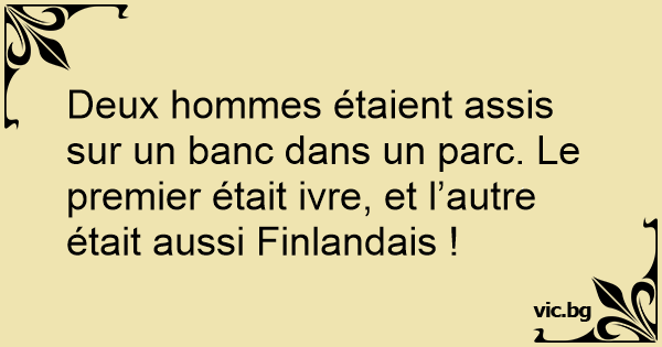 Deux hommes étaient assis sur un banc dans un parc. Le premier était ivre, et l’autre était aussi Finlandais !
