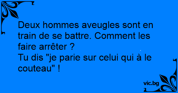 Deux hommes aveugles sont en train de se battre. Comment les faire arrêter ?