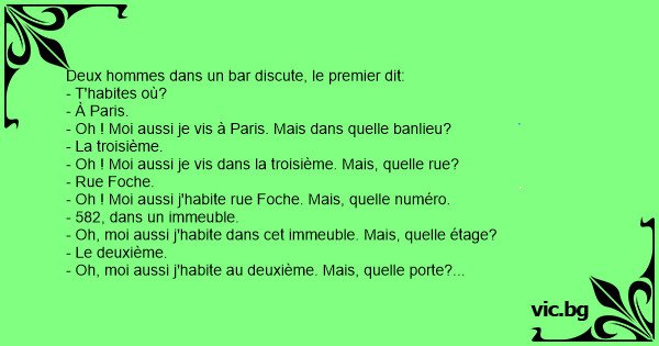- Oh ! Moi aussi je vis à Paris. Mais dans quelle banlieu?