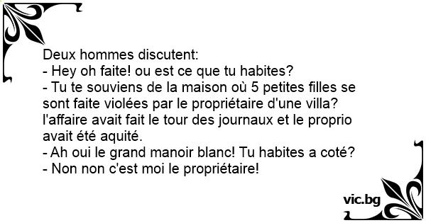 - Tu te souviens de la maison où 5 petites filles se sont faite violées par le propriétaire d'une villa? l'affaire avait fait le tour des journaux et le proprio avait été aquité.
