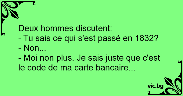 - Moi non plus. Je sais juste que c'est le code de ma carte bancaire...