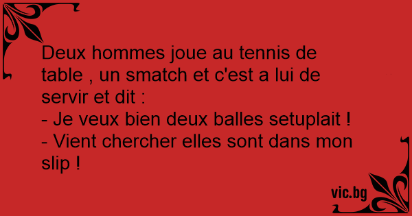 Deux hommes joue au tennis de table , un smatch et c'est a lui de servir et dit :