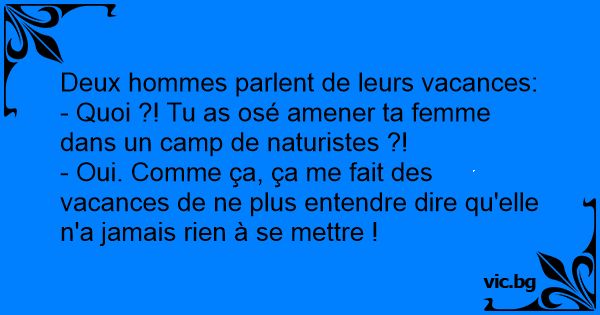 - Quoi ?! Tu as osé amener ta femme dans un camp de naturistes ?!