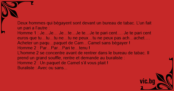 Deux hommes qui bégayent sont devant un bureau de tabac. L’un fait un pari a l’autre :
