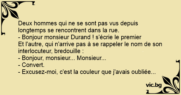 Et l'autre, qui n'arrive pas à se rappeler le nom de son interlocuteur, bredouille :