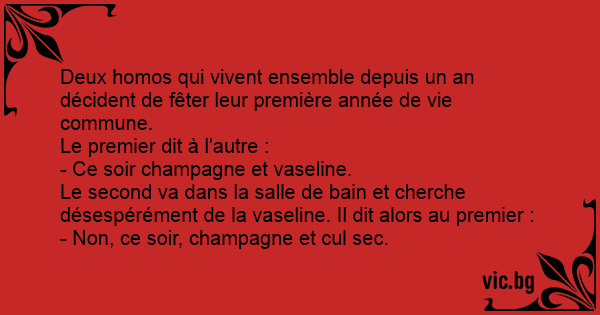 - Ce soir champagne et vaseline.