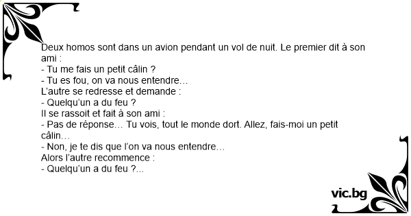 Deux homos sont dans un avion pendant un vol de nuit. Le premier dit à son ami :