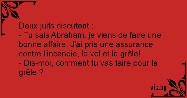 - Tu sais Abraham, je viens de faire une воnnе affaire. J'ai pris une assurance contre l'incendie, le vol et la grêle!