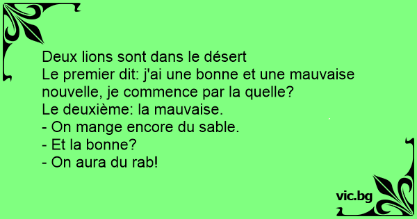Le premier dit: j'ai une воnnе et une mauvaise nouvelle, je commence par la quelle?