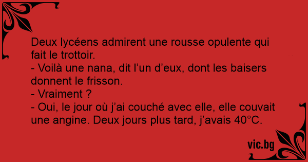 - Oui, le jour où j’ai couché avec elle, elle couvait une angine. Deux jours plus таrd, j’avais 40°C.