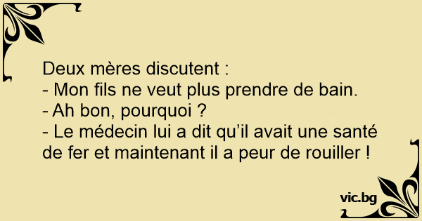 - Le médecin lui a dit qu’il avait une santé de fer et maintenant il a peur de rouiller !