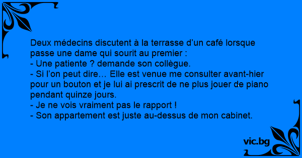 - Si l’on peut dire… Elle est venue me consulter avant-hier pour un bouton et je lui ai prescrit de ne plus jouer de piano pendant quinze jours.
