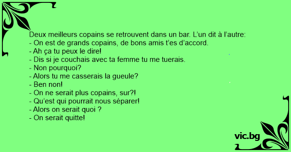 Deux meilleurs copains se retrouvent dans un bar. L’un dit à l’autre: