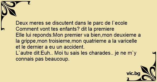 L`autre dit:Euh.. Moi tu sais les charades.. je ne m`y connais pas beaucoup.