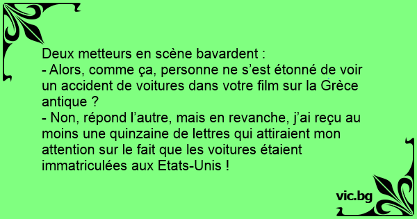 - Alors, comme ça, personne ne s’est étonné de voir un accident de voitures dans votre film sur la Grèce antique ?