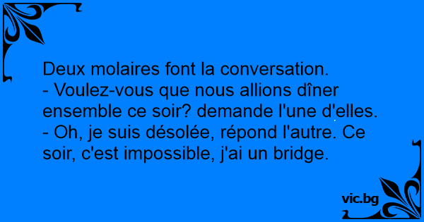 Deux molaires font la conversation.