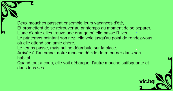 Quand tout à coup, elle voit débarquer l'autre mouche suffoquante et dans tous ses états.