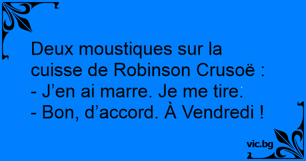Deux moustiques sur la cuisse de Robinson Crusoë :