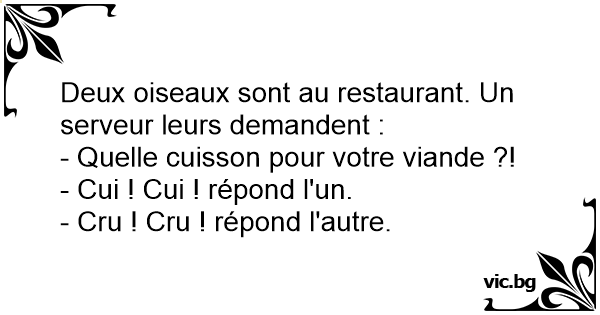 Deux oiseaux sont au restaurant. Un serveur leurs demandent :