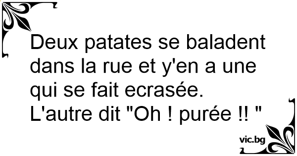 Deux patates se baladent dans la rue et y'en a une qui se fait ecrasée.