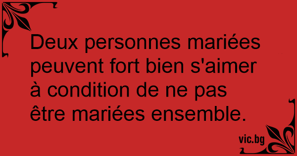 Deux personnes mariées peuvent fort bien s'aimer à condition de ne pas être mariées ensemble.