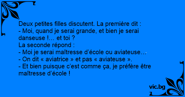 - Et bien puisque c’est comme ça, je préfère être maîtresse d’école !